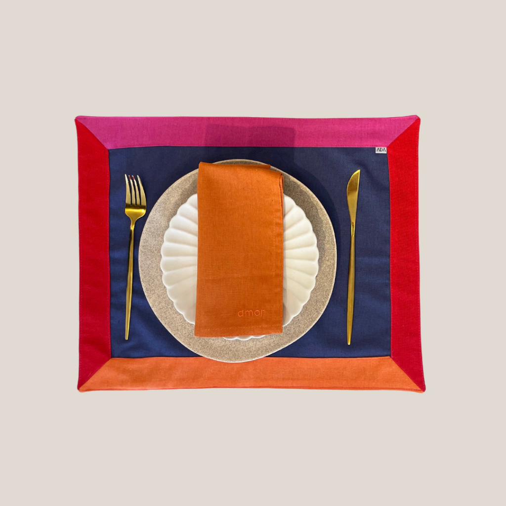 Lugar americano 45x35cm em tecido linho misto em composição de cores.